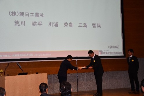 一般社団法人建築設備技術者協会(JABMEE)小瀬 博之 会長より若手優秀技術者賞授与の様子
