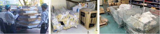 多くの建設現場では各メーカーや代理店から個別に搬入された資機材を建設現場で施工、組み立てをしています。しかし、現場スペースは限られるので、一度に大量に発注して保管しておくことは不可能であり、また納品された資機材は個別に梱包されているため、搬入後現場で解体して梱包資材は廃棄していました。